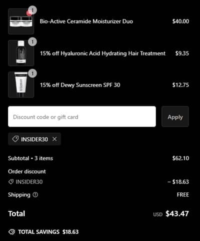 Start your Black Friday shopping early Besties! Enjoy 30% OFF your skincare favorites at the INKEY List! This offer includes sets so stock up on affordable finds today! PLUS you can stack the 30% OFF discount on 15% OFF Secret Savings items, the Hyaluronic Acid Hydrating Hair Treatment and Dewy Sunscreen SPF 30! Check out our example cart below!