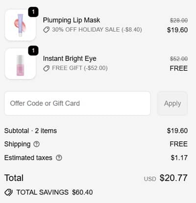 Today’s the day for a clean beauty reset PLUS score a FULL SIZE FREEBIE! Save 30% OFF your skincare faves during the ALPYN Holiday Sale Event! PLUS you’ll receive a FREE Instant Bright Eye Peptide and Niacinamide Serum with EVERY ORDER! That’s a $52 value Besties! Check out our example cart below!