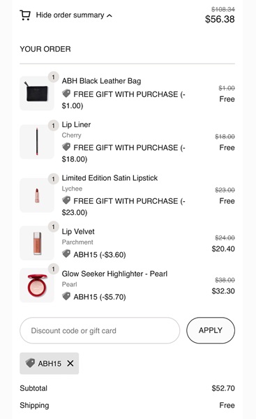 You will be prompted to add your FREE gift with purchase once your order qualifies. New customers use the Anastasia Beverly Hills coupon code ABH15 (click to copy) to save 15% OFF your first purchase. FREE SHIPPING applies to orders $35+. Take a look at our other favorite finds!
