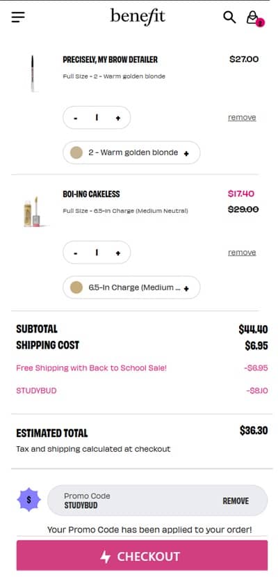No code needed, eligible Benefit Cosmetics concealers are priced as marked. Use the Benefit Cosmetics Back to School coupon code STUDYBUD (click to copy) to add the 30% OFF sitewide savings (does not stack) plus FREE SHIPPING. Exclusions may apply. 1 code per order. Take a look at our other favorite finds!