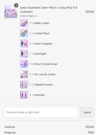 No code needed, the discount reflects on the ColourPop x Sailor Moon Collection in cart. FREE SHIPPING applies to orders $30+. Exclusions may apply. Take a look at our other favorite finds!