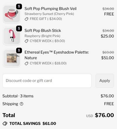 No code needed, eligible Makeup by Mario Cyber Monday items are priced as marked. You will be prompted to choose your FREE gift with purchase once your order qualifies. FREE SHIPPING applies to orders $35+. Excludes sets, mini kits, and already discounted items. Other exclusions may apply. Take a look at our other favorite finds!