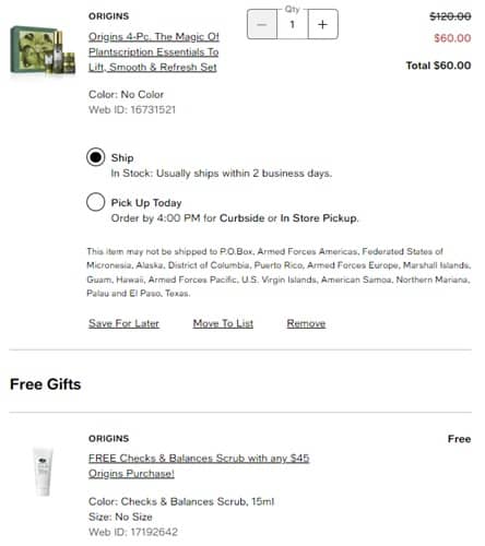 - FREE Checks & Balances Scrub with any $45 Origins purchase