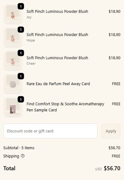 No code needed, Rare Beauty Soft Pinch Luminous Blush are priced as marked. Add the FREE gift with purchase to cart and use the code above with your qualifying order. FREE SHIPPING applies to orders $50+. Exclusions may apply. Take a look at our other favorite finds!