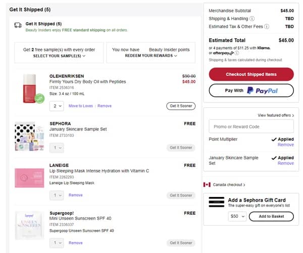 Sign into your account and use the coupon code 4XSKINCARE (click to copy) to activate 4X bonus points on skincare and 5X points on Sephora Collection skincare! Be sure to check out any FREE gift with purchase offers that your Sephora Skincare Daily Deals order might qualify for, like the Skincare Gift Bag with $45 purchase using the coupon code SAMPLEBAG (click to copy)! Don’t forget to add your FREE samples. FREE SHIPPING applies to all orders for Beauty Insider members. Take a look at our other favorite Sephora finds!