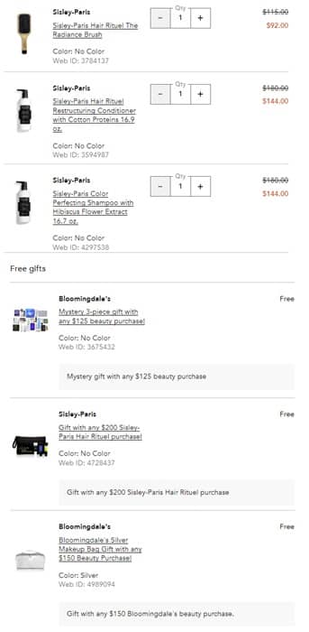 - FREE 3 Piece Mystery Gift with any $125 beauty purchase