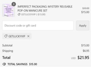 Add the Mystery Set to cart and use the Static Nails coupon code GETLUCKYVIP (click to copy) to apply the discount. FREE SHIPPING applies to orders $55+. Orders less than $55 ship for only $6.95. Take a look at our other favorite finds!
