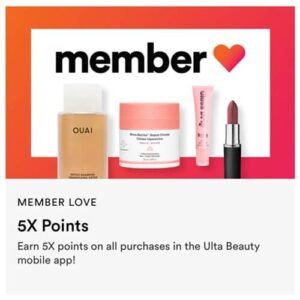 Take advantage of the member love Besties TODAY ONLY! Ulta Beauty Rewards members (free to join) earn 5X points on all in APP purchase! Now’s the time to stock up on your everyday staples or treat yourself to something new and earn those bonus points! Remember, you must activate the offer for it to apply!
