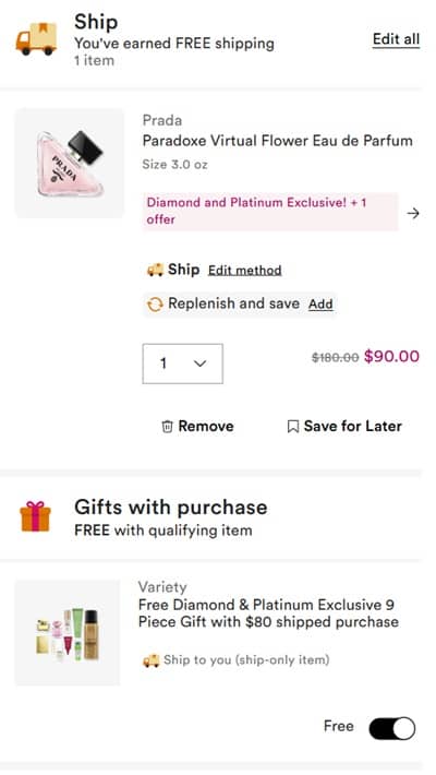 - Platinum & Diamond Exclusive FREE 9 Piece Gift with any $80 purchase (2 options)