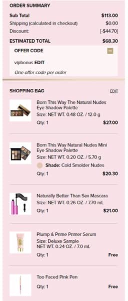 Use the Too Faced coupon code VIPBONUS (click to copy) to add the discount to cart. FREE SHIPPING and FREE samples apply to orders $50+. Excludes Kissing Jelly Lip Oil Gloss, Kits & Sets, and sale items. Other exclusions may apply. Take a look at our other favorite finds!