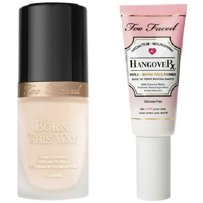This IS the Ultimate Complexion Set! Valued at $75 if purchased separately, you can pickup this Too Face priming & perfecting duo which contains a FULL SIZE Born This Way Foundation (choose from 13 shades) and a FULL SIZE Hangover Replenishing Face Primer for only $36 at HSN! FREE SHIPPING applies in cart.