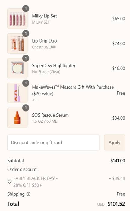 The Tower 28 Black Friday event is finally here! Stock up on your favorites or try something new for less! Save 28% OFF your Tower 28 order of $50+ or 20% OFF orders less than $50! To make the deal even sweeter, you’ll receive a FREE FULL SIZE MakeWaves Mascara, a $20 value, with orders $100+!