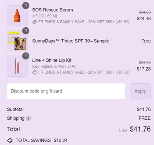 No code needed, the discount will apply to your qualifying order in cart. FREE SHIPPING and FREE samples apply to all orders $30+. Excludes bundles and select sets. Other exclusions may apply. Take a look at our other favorite finds!