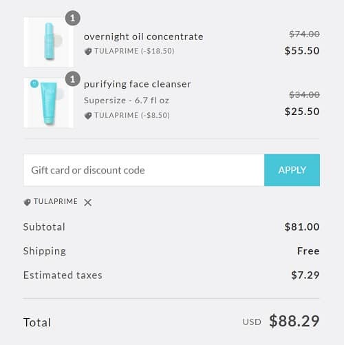 Use the TULA coupon code TULAPRIME to add the discount to your cart. FREE SHIPPING applies to orders $40+. Excludes collaboration items and Gold Glow + Get It. Other exclusions may apply.
