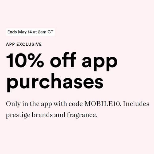 App exclusive alert Besties! Save 10% OFF your Ulta Beauty purchase including prestige and fragrance! Stock up on your favorites or try something new, you deserve it!