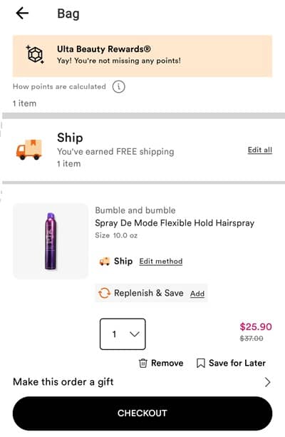 Activate any points multiplier offers you may have available to you. FREE SHIPPING on all orders for Ulta Beauty Rewards Credit Card purchases, orders $25+ for Diamond members, and $35+ for everyone else. You can also choose Buy Online, Pick Up In Store (BOPIS) where available. Check out our other favorite Ulta Beauty finds!