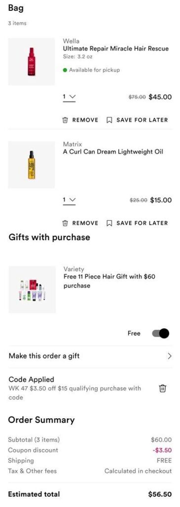 Don’t forget to activate any points multiplier offers you may have available to you. Use the Ulta Beauty coupon code 131365 (click to copy) to save $3.50 OFF your qualifying non prestige purchase of $15+ (exclusions apply). FREE SHIPPING for Diamond and Platinum members on orders that include a Beauty Steal item, if not then $25 for Diamond and $35+ for everyone else or choose FREE BOPIS buy online pick up in store if available in your area! Check out our other favorite Ulta Beauty deals!