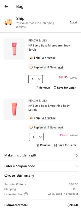 APP Exclusive alert! Save 50% OFF select Peach & Lily Favorites for a LIMITED TIME ONLY in the Ulta Beauty APP! PLUS you’ll receive 5X BONUS POINTS! Restock the multi-tasking Lazy Day All-In-One Moisture Pads to tone and moisturize or, for Besties looking to tackle body bumps and breakouts, add the KP Bump Boss Microderm Body Scrub to cart!