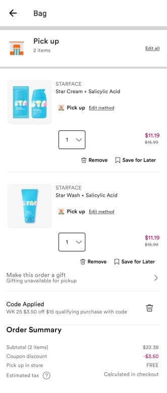 Activate any points multiplier offers you may have available to you. Use the Ulta Beauty coupon code 118705 (click to copy) to save $3.50 OFF non-prestige purchases $15+ (exclusions apply). FREE SHIPPING applies at $25+ for Diamond members and $35+ for everyone else or choose BOPIS buy online pick up in store if available in your area. Check out our other favorite Ulta Beauty finds!