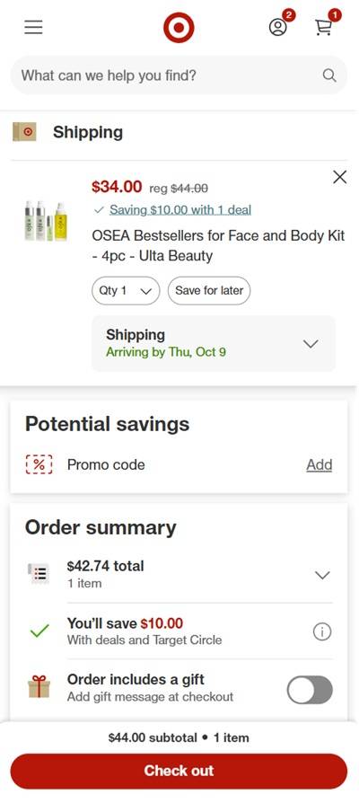 No code needed, eligible Ulta Beauty at Target items are marked “Target Circle Deal: Save $10 when you spend $40 on select ULTA beauty products”. ADDED BONUS: Pay with your Target Circle Card to receive an additional 5% OFF plus FREE SHIPPING on eligible items! If not then FREE SHIPPING on eligible orders $35+, FREE SHIPPING on eligible orders with Target Circle 360 Membership, or choose FREE in-store pickup if available in your area. Excludes hair care. Other exclusions may apply. Take a look at our other favorite finds!