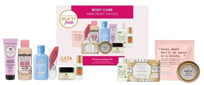 Treat yourself from head to toe, Besties! Pick up the Ulta Beauty Body Care Mini Must Haves 10 Piece Sampler Kit for only $20 WHILE SUPPLIES LAST! This kit is filled with minis from your favorite brands like Dionis, Soap & Glory, Sabon, Love Wellness, and more!