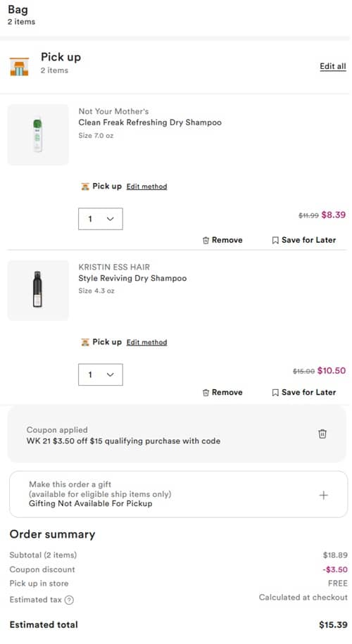 No code needed, eligible Ulta Beauty dry shampoo priced as marked. Activate any points multiplier offers you may have available to you. Use the Ulta Beauty coupon code 447437 (click to copy) to save $3.50 OFF non-prestige purchases $15+ (exclusions apply). FREE SHIPPING applies at $25+ for Diamond members and $35+ for everyone else or choose BOPIS buy online pick up in store if available in your area. Check out our other favorite Ulta Beauty finds!
