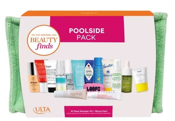 Stay safe in the sun with a little help from Ulta Beauty! The new Beauty Finds Poolside Pack is now on sale for only $15 (was $30) WHILE SUPPLIES LAST! This $105 value includes deluxe sized skin and sun care samples from brands like Sunday Riley, Kinship, Shiseido, and more! There’s even a KORRES Santorini Grape Velvet Skin Drink sample, ~46% of the full size, inside! Take a look at our value breakdown below to help decide if this is worth adding to cart!