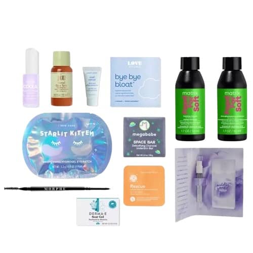 Skincare, hair care, makeup, and more! This FREE gift with purchase has a little bit of everything! Receive a FREE 12 Piece Gift with any $75 purchase at Ulta Beauty! Including generous deluxe sized samples from COOLA, Matrix, Derma E, Pixi, and more! WHILE SUPPLIES LAST, don’t miss out!
