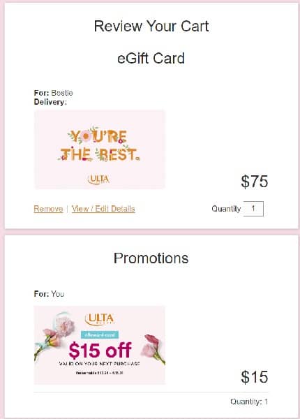 It’s back Besties! Get a FREE $15 eReward card for every $75 gift card or e-gift card purchased at Ulta Beauty online! Send to your Bestie and keep the freebie for yourself or pick up a gift card for yourself to maximize your savings!