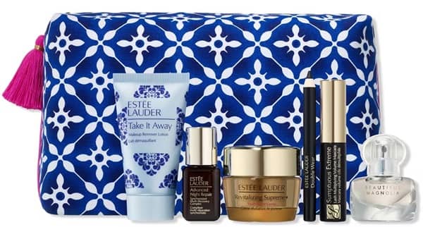 This freebie has a little bit of everything! Receive a Estée Lauder Gift with any $50 purchase at Ulta Beauty WHILE SUPPLIES LAST! This set contains 7 deluxe sample sized favorites including the Revitalizing Supreme+ Youth Power Crème, a Double Wear 24H Waterproof Gel Eye Pencil Mini, Beautiful Magnolia Eau de Parfum Mini, and more! Be sure to add on the FREE Drawstring Bag with any $30 makeup purchase if your order qualifies!