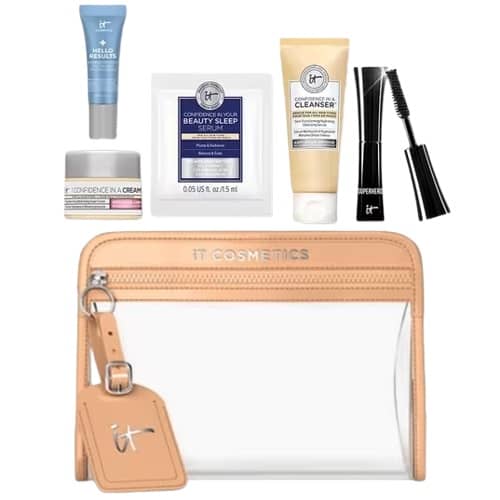 Calling all of our IT Fam! This freebie is for you! Receive a FREE IT Cosmetics Gift with any $50 purchase WHILE SUPPLIES LAST at Ulta Beauty! A signature pouch is filled with deluxe sample sized favorites like the Superhero Mascara, Confidence in a Cleanser, and more! Now is a great time to shop the TODAY ONLY 50% OFF Ulta Beauty 21 Days of Beauty Steals and add on this freebie!