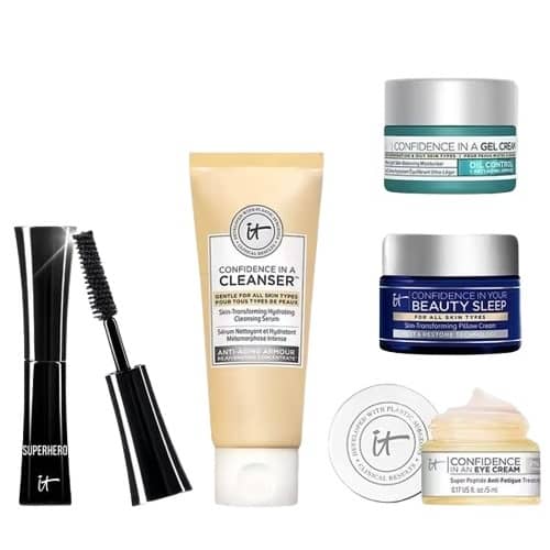 Beauty Break Besties! Receive a FREE IT Cosmetics Gift with any $50 purchase at Ulta Beauty WHILE SUPPLIES LAST! This set contains 5 deluxe sample sized bestsellers like the Confidence In An Eye Cream, Superhero Mascara, and more! Be sure to add on the FREE gifts below if your order qualifies!
