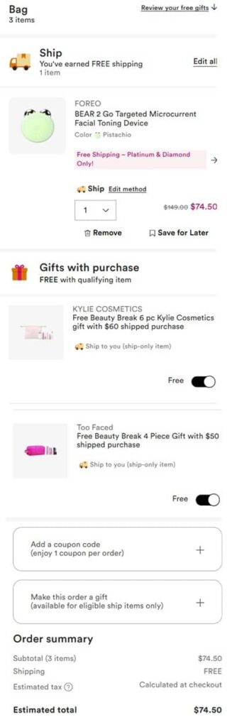 - FREE KYLIE Cosmetics Gift with any $60 purchase