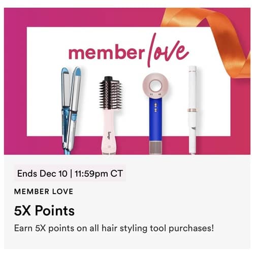 Take advantage of Ulta Beauty Member Love while you can! Now’s the time to replace your old hair dryer, curling or flat iron or grab one as a gift for your Bestie! Ultamate rewards members (free to join) earn 5X points on hair styling tools! Remember, you must activate the offer for it to apply! Be sure to add the FREE 28 Piece Beauty Bag with any $85 purchase (2 options) to your qualifying online order!