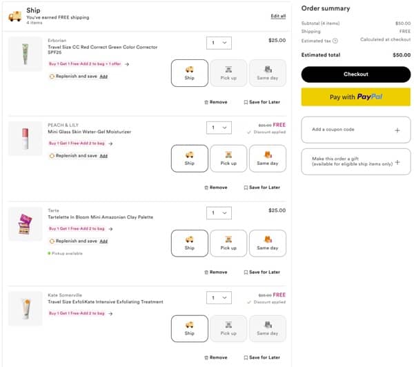 So many minis, so little time! The sale we’ve been waiting for is here! Add 2 eligible Ulta Beauty Minis to cart and 1 will become FREE! Choose from brands like Tarte, Supergoop!, Kopari, Kiehl’s, and so many more! Don’t forget to add any FREE gifts with purchase your order may qualify for: