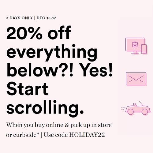 Besties, why wait for shipping when you can BOPIS, buy online and pick up in the store? For 3 DAYS ONLY save 20% OFF select brands when you choose the buy online pick up in store option at Ulta Beauty! There are over 50 brands participating in this event, from Tarte to Urban Decay to r.e.. beauty, and MUCH MORE so you’re bound to find your staples and a new favorite! Don’t forget to pickup your purchase within 5 days of your Ulta Beauty BOPIS order.