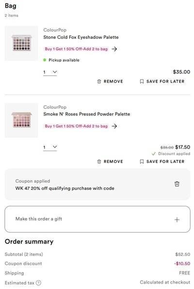 - Buy 1 get 1 50% OFF ColourPop Entire brand