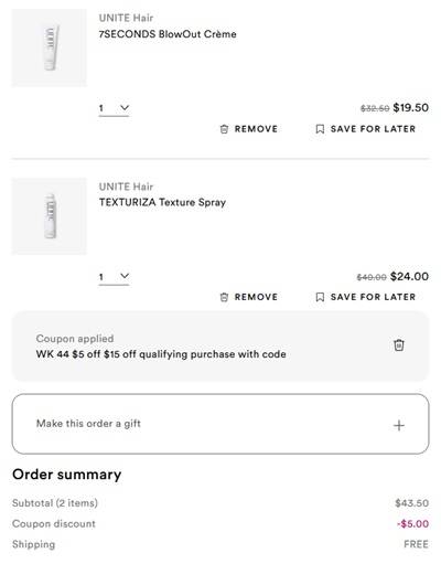 No more bad hair days Besties! Save 40% OFF UNITE Hair PLUS use the code below for an additional $5 OFF eligible orders $15+ at Ulta Beauty! From the frizz fighting 7SECONDS BlowOut Crème to the shine enhancing 7SECONDS Glossing Spray! UNITE has something for everyone! Be sure to add on any FREE gift with purchase that your order may qualify for:
