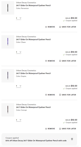 Besties! Don’t sleep on this one! The fan favorite Urban Decay 24/7 Glide-On Waterproof Eyeliner Pencil is 50% OFF for a LIMITED TIME ONLY at Ulta Beauty! This creamy, long lasting formula will become your new go-to! Don’t let your favorite shades sell out! Be sure to add on the FREE Hair Care Gift with any $65 purchase if your order qualifies!