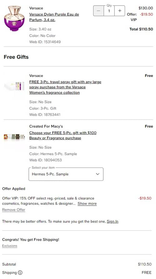- FREE Versace Travel Spray Gift with any Versace Men’s Large Spray Purchase ($52.34 value)