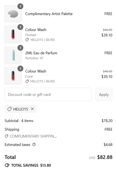 Indulge yourself with a luxury beauty haul and score a LIMITED TIME ONLY freebie! Receive a FREE Victoria Beckham Beauty Artist Palette with any $50 purchase WHILE SUPPLIES LAST! New customers use the code below to save 15% OFF your first order! Treat yourself to a new shade of Colour Wash Blush Water Tint or restock the bestselling and one of our Bestie faves, the Satin Kajal Liner! Grab this perfect for your vanity goodie while you can!