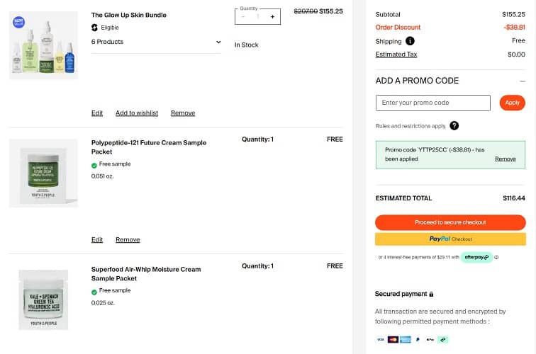 Use the Youth to the People coupon code YTTP25CC or 3-STEP-KIT to add the discount to your cart. FREE gift with purchase will add automatically to your qualifying order. FREE SHIPPING and FREE samples apply to orders $50+. Take a peek at our other favorite deals!