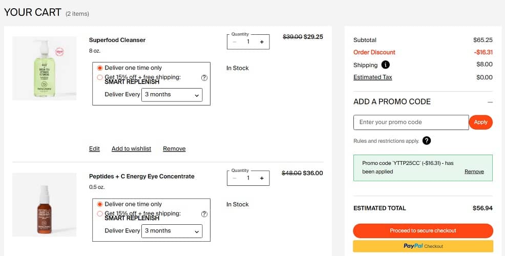 Use the Youth to the People coupon code YTTP25CC to add the ADDITIONAL 25% OFF. FREE SHIPPING applies to orders $50+ or choose FREE SHIPPING on qualifying orders $25+ with ShopRunner. If you don’t have a ShopRunner account you can sign up for a FREE 1 year membership from Paypal and get FREE 2-DAY SHIPPING at some of your favorite stores!