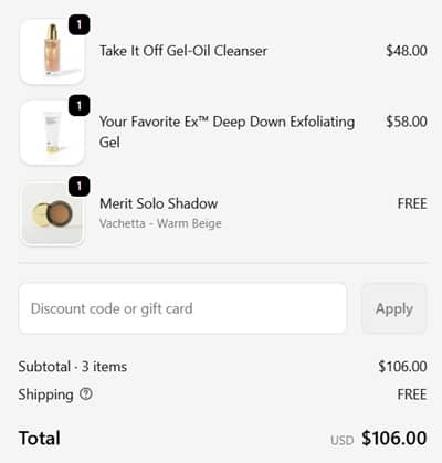 No code needed, the YSE Beauty FREE Merit Shadow gift with purchase will add to cart once your order qualifies. FREE SHIPPING applies to orders $65+. Take a look at our other favorite finds!