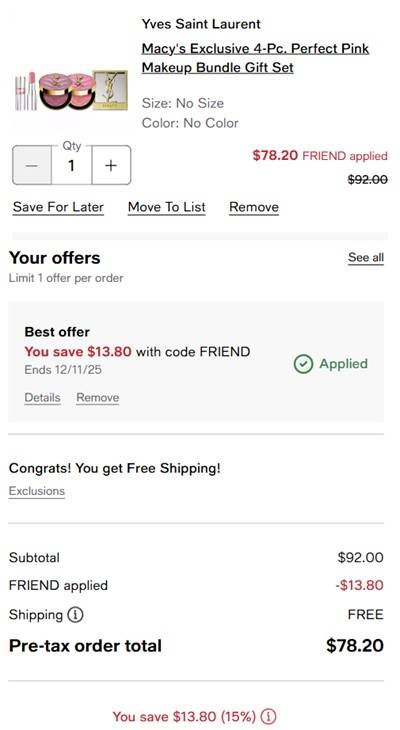 Perfect for the luxury makeup lover in your life! Score the YSL Perfect Pink 4 Piece Makeup Bundle, a $137+ value, for only $78.20 with FREE SHIPPING at Macy’s! This set includes 2 FULL SIZE Make Me Blush 24H Buildable Powder Blush in the shades Nude Lavalliere and Restless Rose, a FULL SIZE Loveshine Lip Oil Stick in Nude Lavalliere, PLUS a Signature Gold Mirror! Add to cart before they sell out Besties!